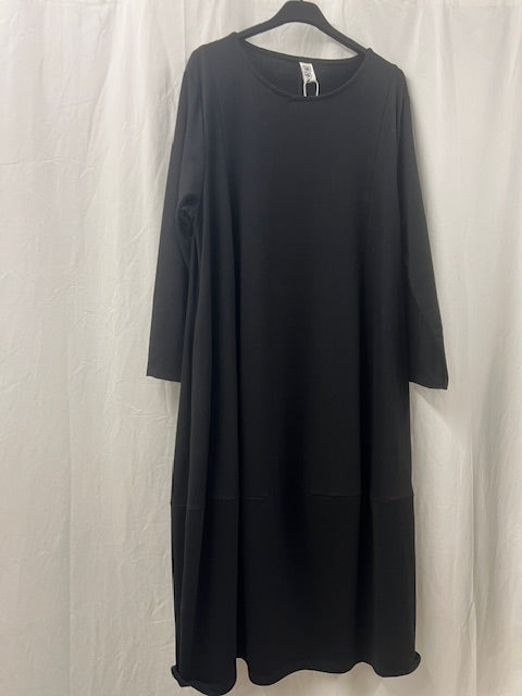 Onze Floor dress is een zwart kleed met lange mouwen.