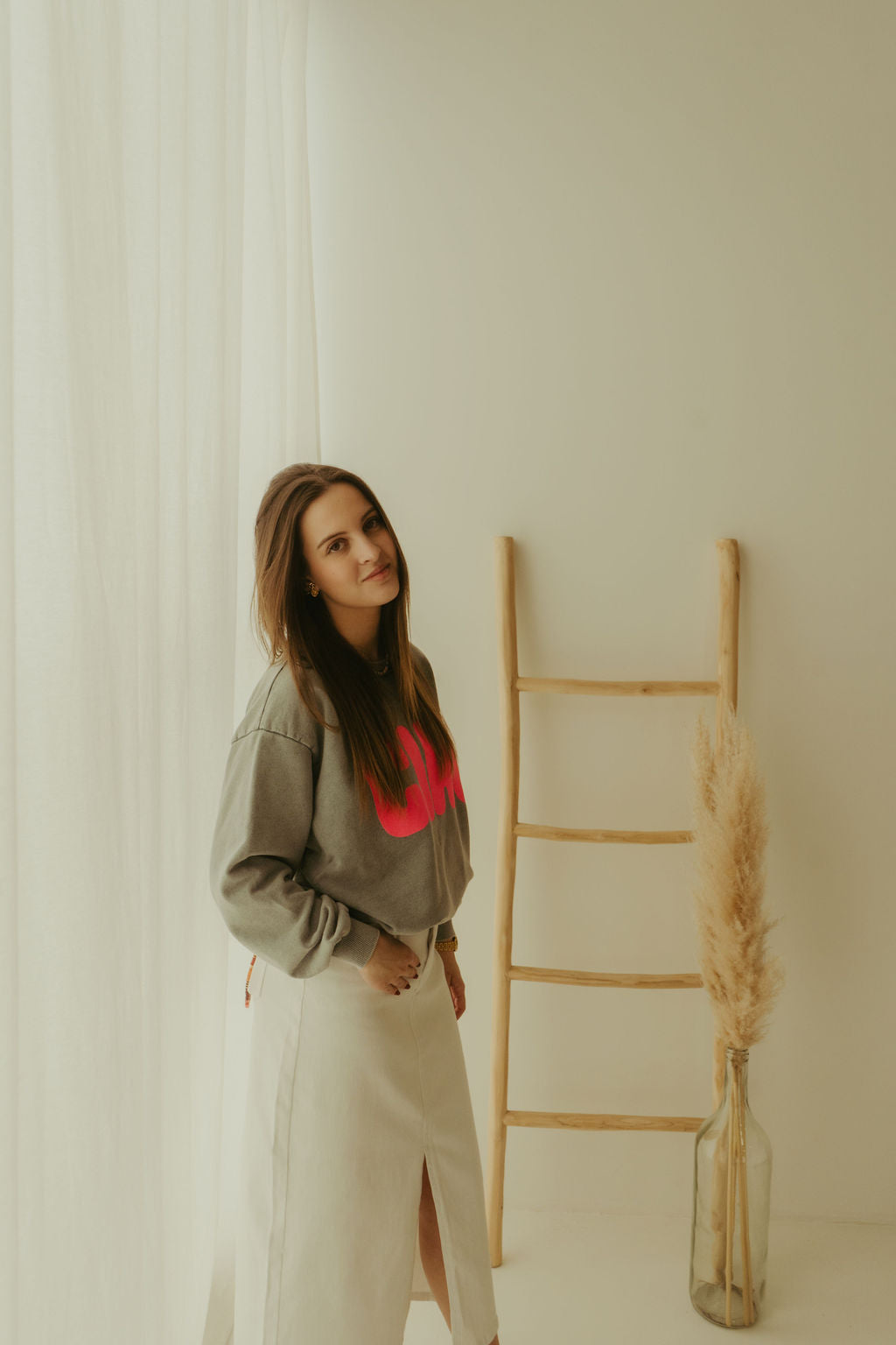 Deze rok wordt door onze modellen gedragen in de maat die ze normaal gezien hebben