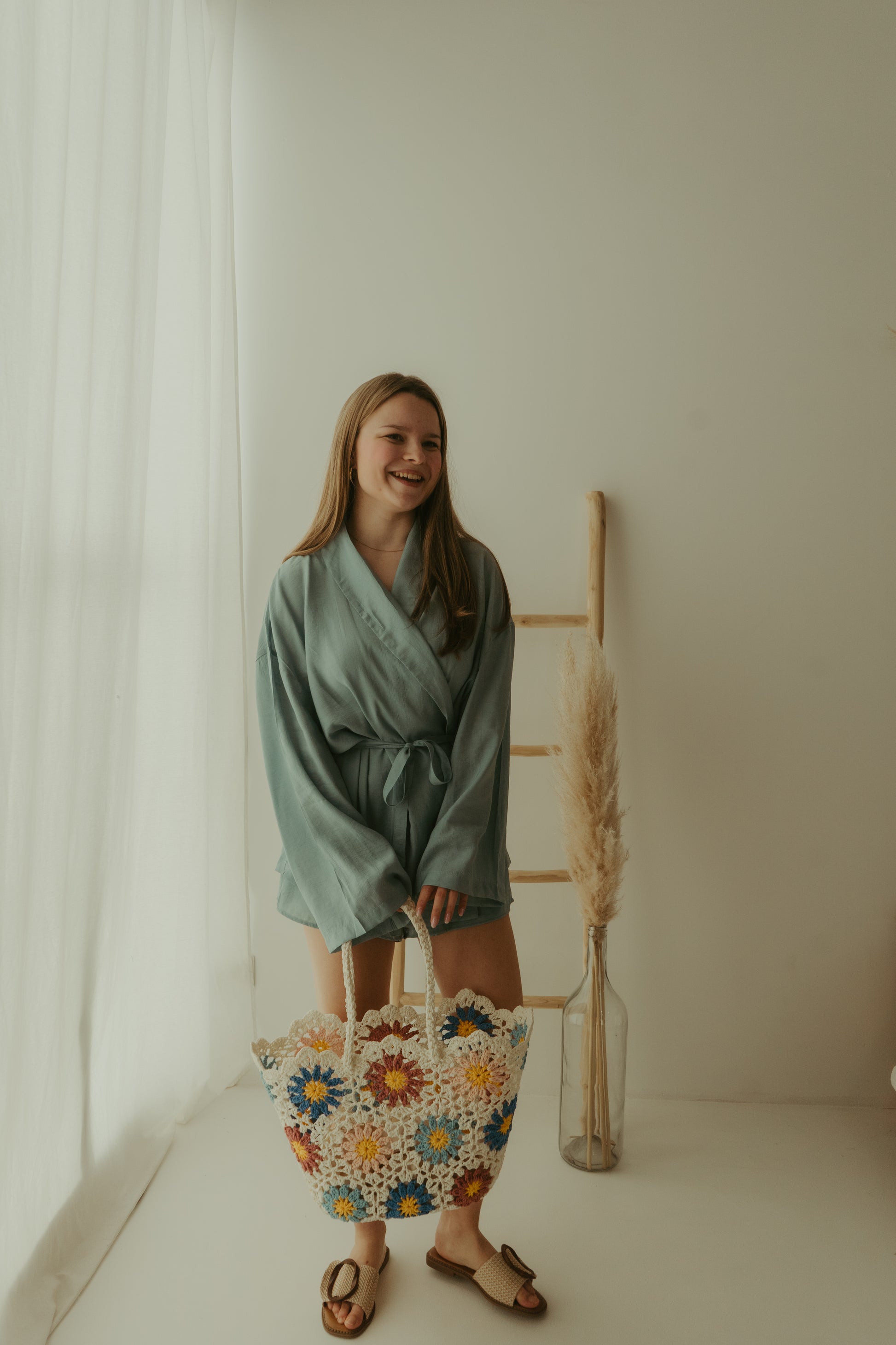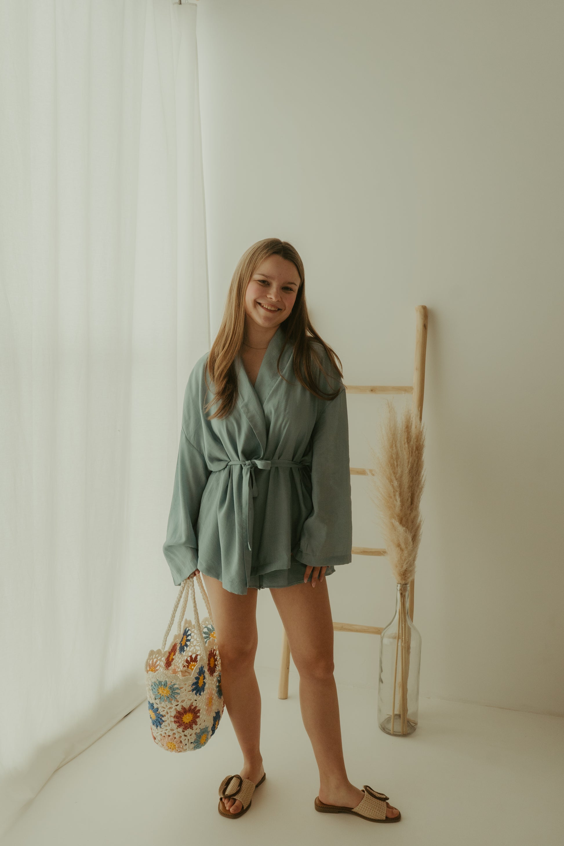 Onze Lianne set is een super tof setje dat bestaat uit een shortje en een korte kimono. Ook heel leuk om de kimono op een jeanske te combineren.