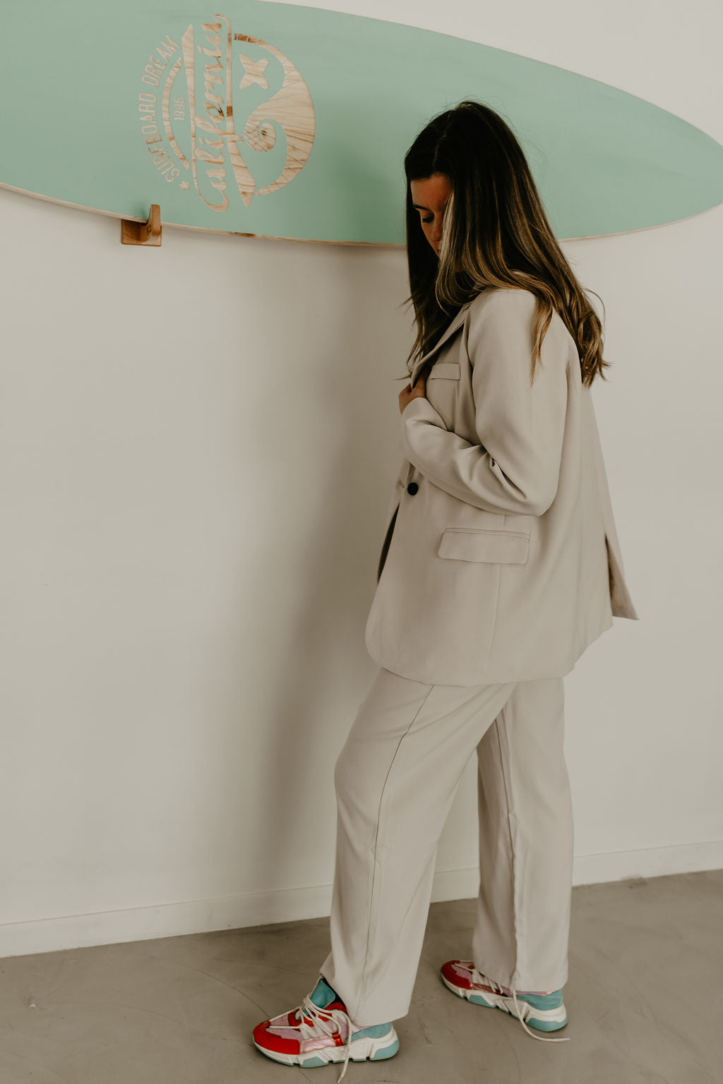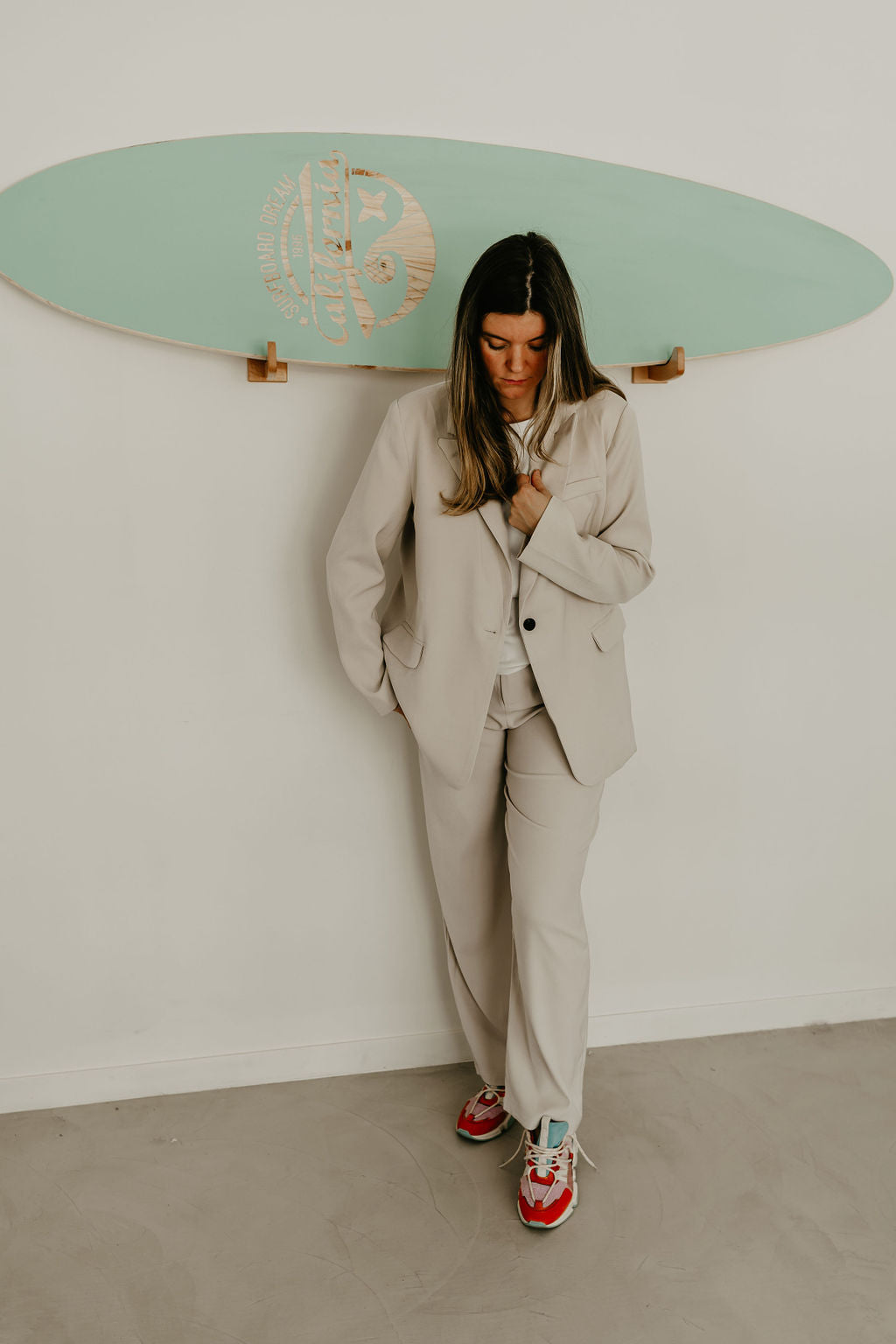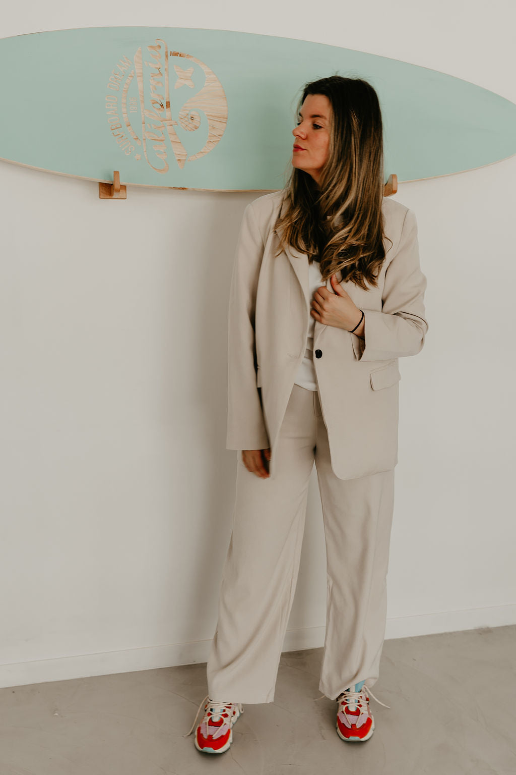 Onze Mae pantalon is een deel van onze Mae-suit. Een rechte fit, lichtjes high-waisted. Een iets dikker stofje, dus super mooie kwaliteit!