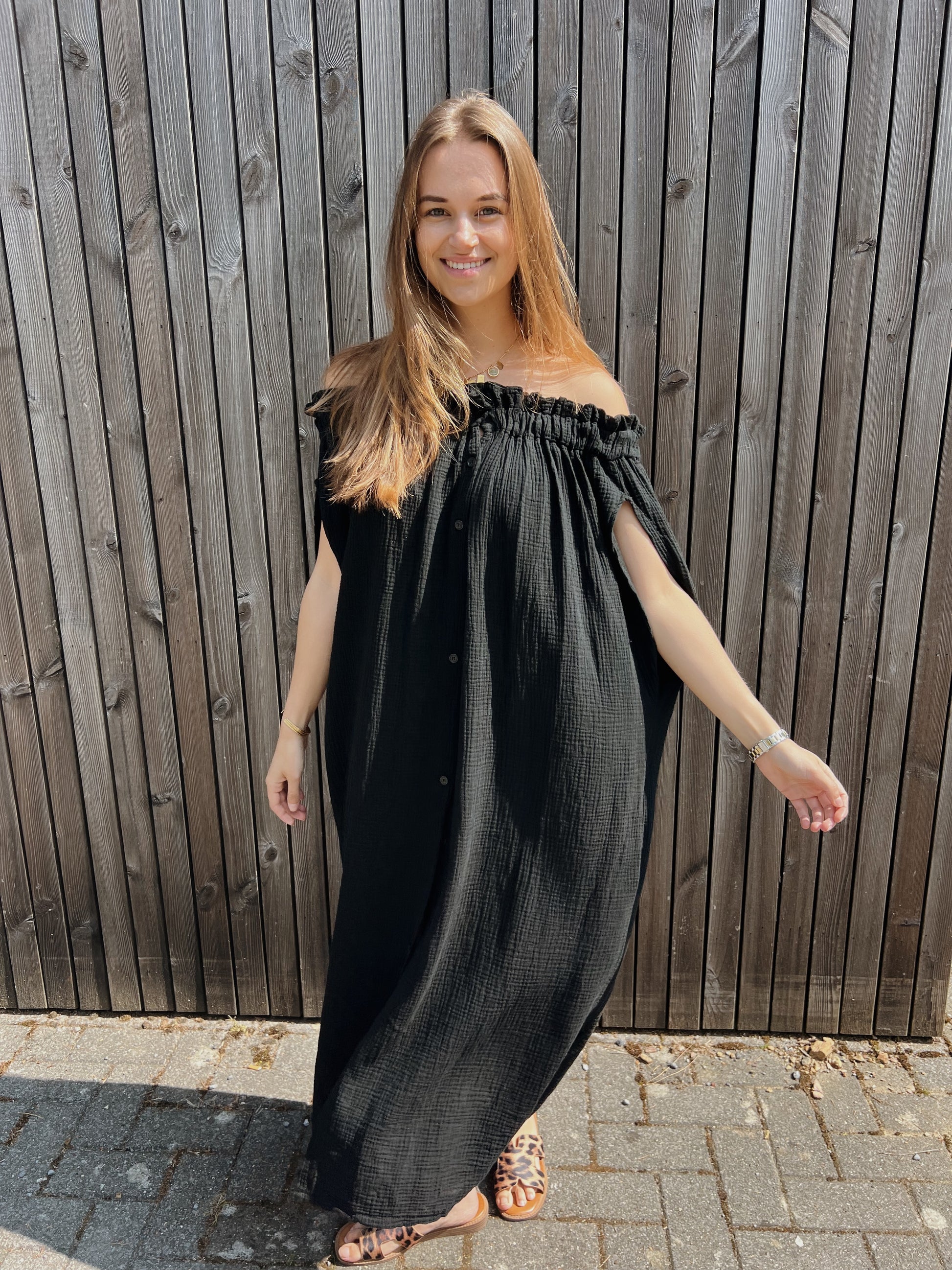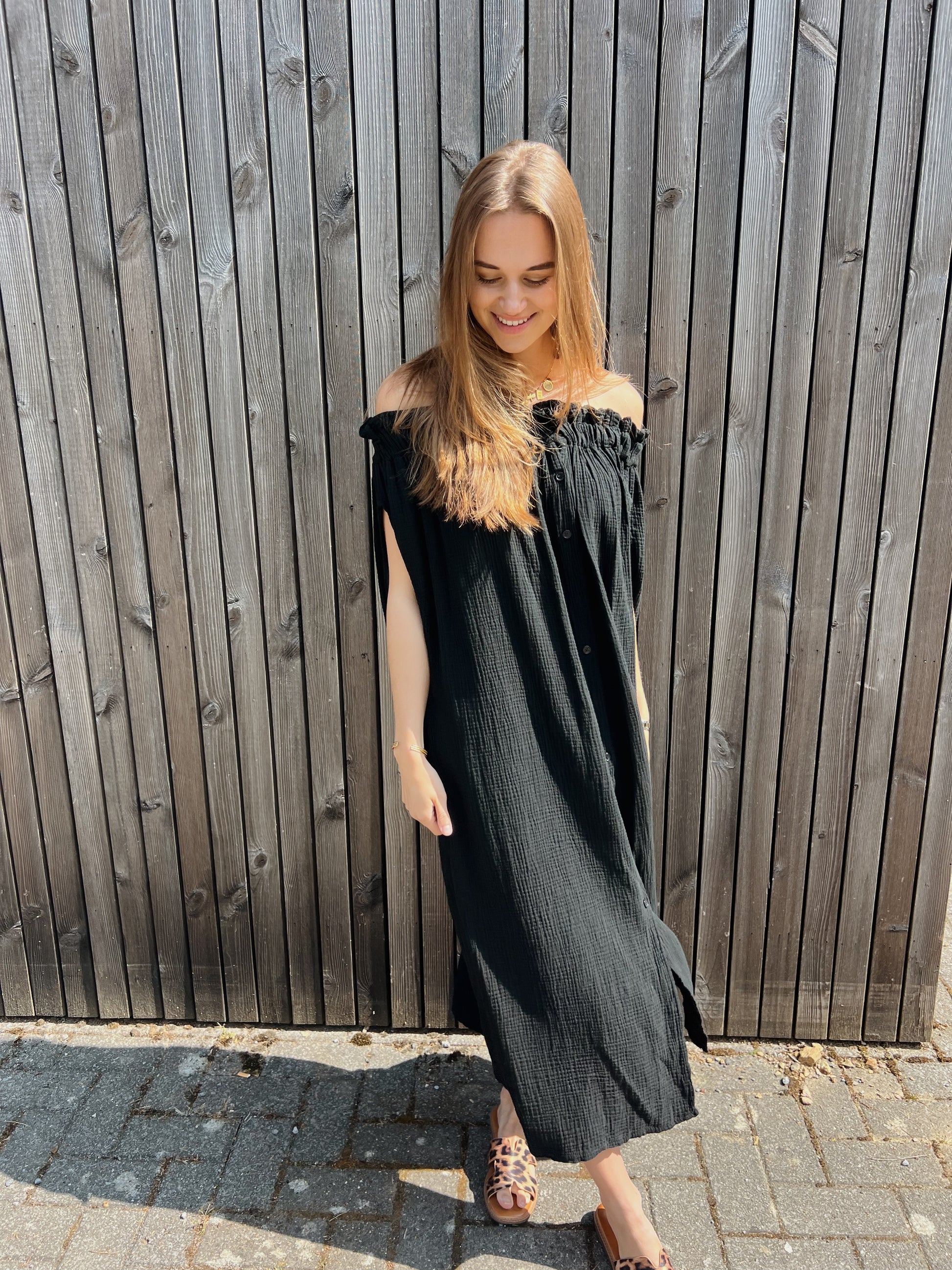 Onze Mathilde dress is een prachtige off shoulder tetra jurk, suuuuper tof met een slippertje of een hakje te combineren.