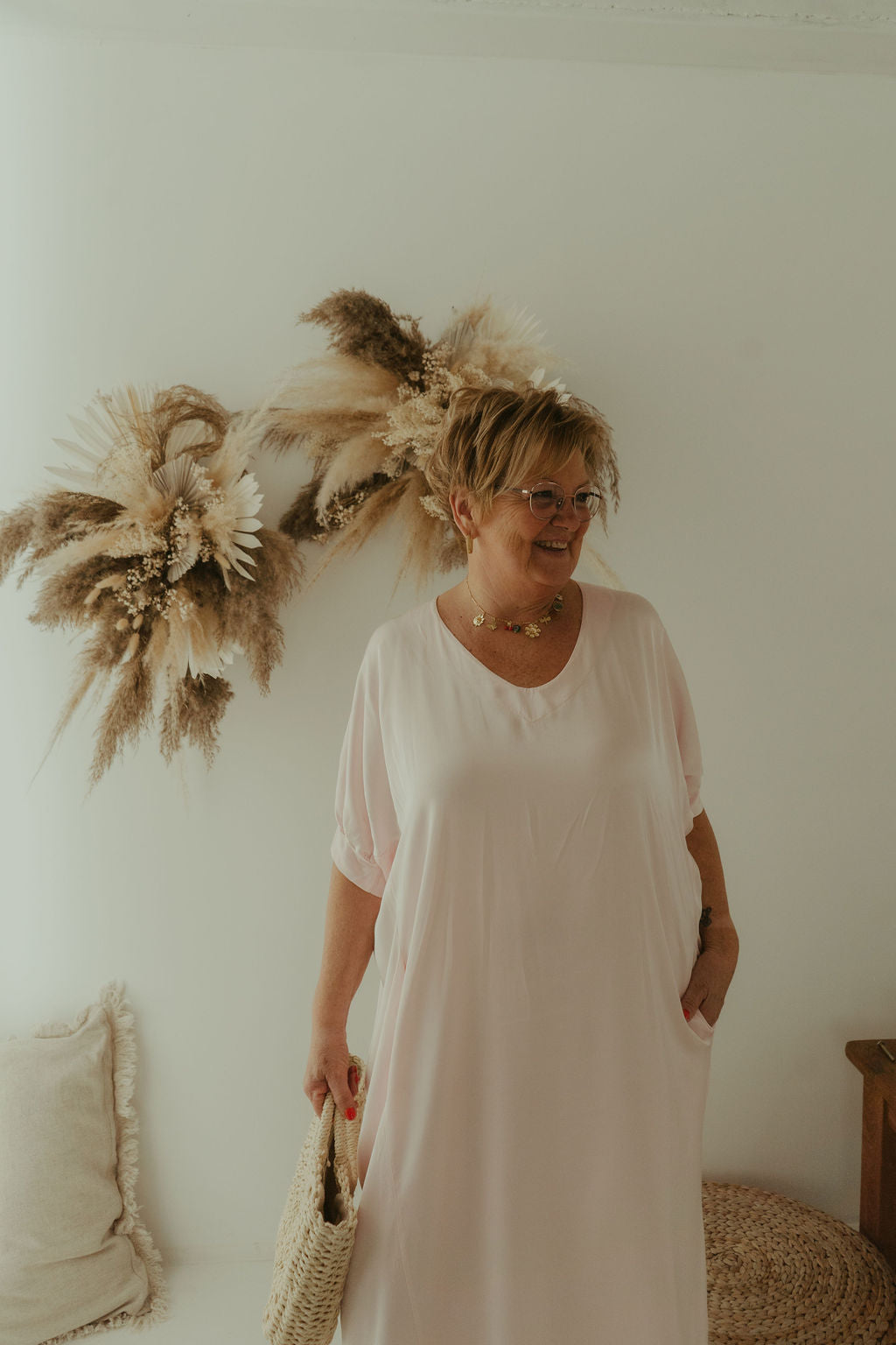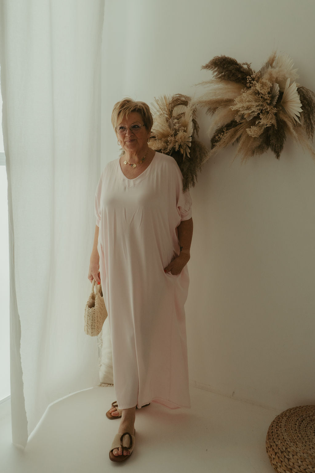 Deze jurk kan door iedereen gedragen worden, zowel door maatjes 34 als door maatjes 46.