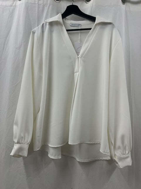 Een witte blouse met lange mouwen.